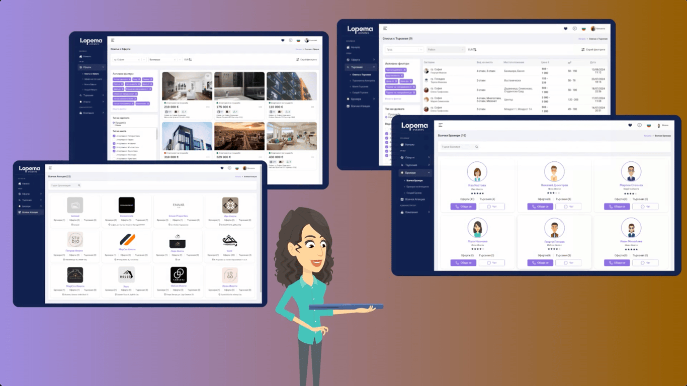 Идеален за малки до средни агенции с един или двама брокери. Баланс от оферти и търсения за ефективно обслужване на клиенти.